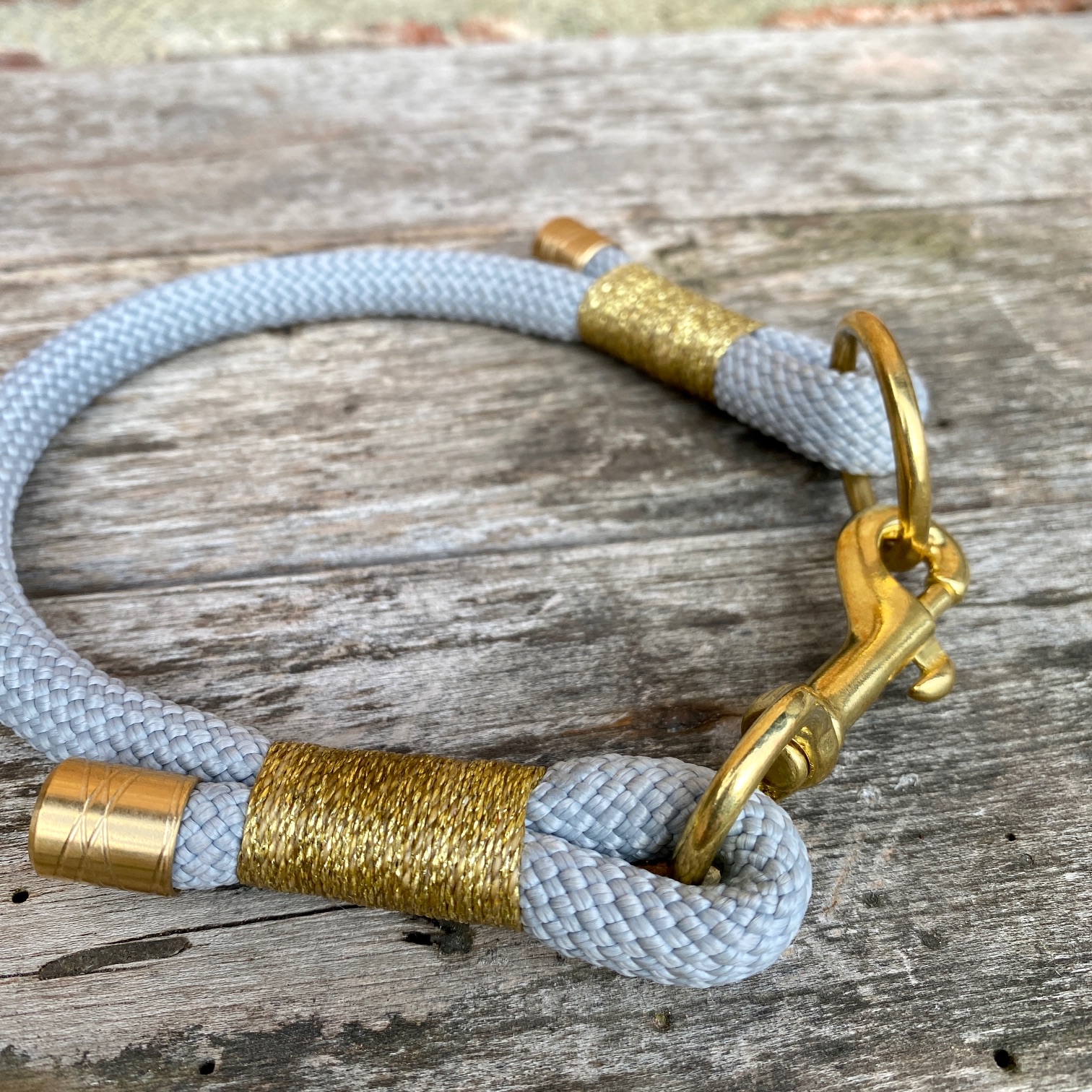grijze collier met gouden afwerking